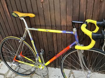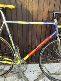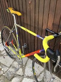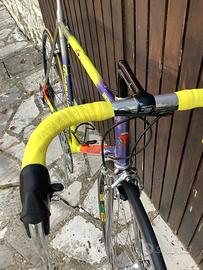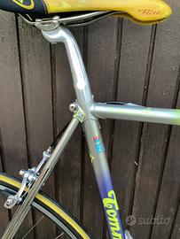 Tommasini Sintesi da primi anni 90. Buone condizioni con normali segni di usura. Gruppo Campagnolo C Record con freni Cobalto. Leve freno Mirage. Taglio tubo sella 57 cm, tubo orizzontale 56 cm. Spedizione possibile.