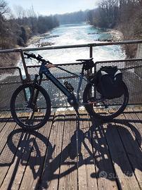 Torpado Hyper, ruote da 29 Taglia L adatta per altezza da 1,80 a 1,90 modello 2023 con motore Oli Sport, batteria da 630 Kw con display/computerino nuova versione, usata prevalentemente per turismo. Fatto nel corso del tempo diversi upgrade, installato cambio Shimano, sella nuova, pedali flat Acid, corona e catena nuova, dischi freno nuovi, copertoni nuovi con salsicciotti anti foratura, portapacchi SKS con borse, naturalmente suo carica batteria e libretto uso e manutenzione. Autonomia media a seconda del livello di potenza utilizzata, da 1 a 5 e tipo di strade, in pianura sino 130 km. usando prevalentemente livello 2, con salite collinari comunque mediamente 100 km. Vendo per sopraggiunti problemi di salute... No spedizione solo consegna brevimani