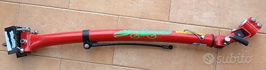 Barra per traino bici bambino ottima per le passeggiate con il bambino fino alla sua guida indipendente.La barra viene regolata in modo da alzare la ruota anteriore durante il traino,per bici più piccole...senza dover montare le ruotine,oppure ...per l'età più grande... semplicemente trainando.in questo caso basterà che il bimbo giri il volante nella direzione di marcia