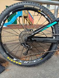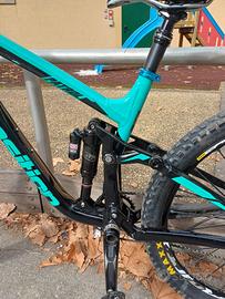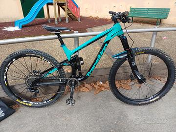 Vendo Transition Patrol del 2017, acquistata da un privato nel 2022, utilizzata solo nei sentieri locali, presenta normali segni di usura, come piccole scalfitture della verniciatura dovute da sassolini o lievi graffi sui cerchi (come si mostra in foto) ma nulla che comprometta la guida in nessun modo. Il cerchio anteriore è stato sostituito nel 2024 con uno nuovo della Mavic (in regalo anche tiraraggi mavic). Forcella RockShox Pike 160mm e ammortizzatore RockShox Super Deluxe 155 mm con SAG del 35% perfettamente funzionanti. Il cambio è un Sram NX 11 Speed che presenta una scalfittura ma senza comprometterne l'utilizzo, mentre i freni sono Sram Guide R, anch'essi perfettamente funzionanti. Monta un reggisella telescopico KS LEV Integra con cartuccia quasi terminata da sostituire. Manopole Specialized usurate da sostituire. La bici è stata sottoposta due volte l'anno dall'acquisto ad una revisione totale presso officine specializzate, cambiando periodicamente catena, pacco pignoni e pastiglie dei freni, facendo spurgo dei freni, controllo ammo e forca ecc. ecc. La bici è una taglia M, ma molto piccola, ideale per rider alti circa 150-165 cm e perfetta per chi si vuole avvicinare a questo sport essendo molo versatile, sia in salita, ma soprattutto in discesa. Il prezzo è trattabile, in caso si volessero apportare ulteriori modifiche e sostituzioni necessarie.