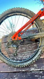 Bici da enduro/downhill taglia M, ottima sia per principianti che per chi ha stile di guida tecnico perché molto manovrabile su tutti i terreni. Ruote 27,5, forcella rockshox pike, ammortizzatore posteriore rockshox, freni avid a disco anteriore 203, posteriore 190, cambio sram gx, copertoni nuovi Michelin adattabili sia a camera d'aria che a tubless (in foto il copertone anteriore non era ancora stato sostituito); presenta leggeri segni di usura su vernice del telaio e sellino. Vendo per cambio taglia. Ritiro a domicilio oppure spedizione a carico dell'acquirente.