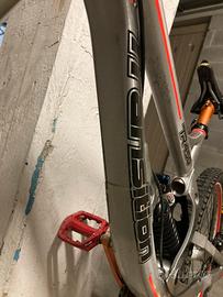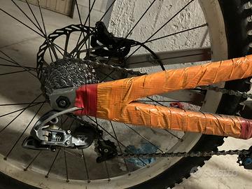 Transition TR450 2011 per uso DH. Ruote da 26". Taglia M. Montaggio come da foto (forcella Marzocchi, ammo Fox, freni formula cura). Condizioni molto buone, tipici segni di normale utilizzo downhill. Piccola bolla nella parte inferiore del triangolo principale. I cerchi meriterebbero ricentraggio. A disposizione per qualsiasi altra foto di dettaglio.