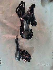 Trasmissione usata completa dei seguenti componenti: -corone cannondale 50-34 v -pedivelle cannondale 175 completo di cuscinetti -pacco pignone Shimano 11-32v -pacco pignone Shimano 11-28v -deragliatore posteriore 11v Shimano Ultegra R8000 -deragliatore anteriore 2x11v Shimano Ultegra R8000 -comando cambio Ultegra R8000 sinistra -pinze freno Ultegra R8000 anteriore e posteriore -dischi freno -catena