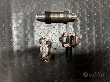 Vendo per inutilizzo: - guarnitura shimano claris 50/34 170mm - movimento centrale shimano BSA octalink 113 68 BC1.37x24 -pedali shimano SPD - cassetta 8v 11/32 SunRace - deragliatore anteriore shimano tourney - deragliatore posteriore shimano Acera La guarnitura e i pedali presentano segni di utilizzo mentre i deragliatori e la cassetta sono anche in ottime condizioni. Prezzo trattabile.