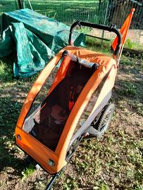 trailer FOX singolo tutto pieghevole per un trasporto facile. si adopera anche come carrozzina essendo dotato di ruota anteriore