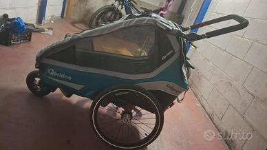 Qeridoo Kidgoo 1 Petrol, trasporto per bambino singolo, antipioggia, antivento, zanzariera, parasole. Si trasforma in passeggino con il ruotino in dotazione. Ammortizzato, sistema antiurto in caso di caduta, cinture omologate. Usato pochissimo. 3 amni di vita. Pagato € 339.