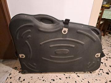 Bike box semirigida, usata 3 volte. Presenta segni di trasporto in aereo ma è ancora in buone condizioni. Ritiro in centro città, vicino a Piazza Florio.