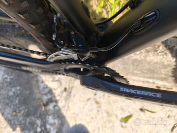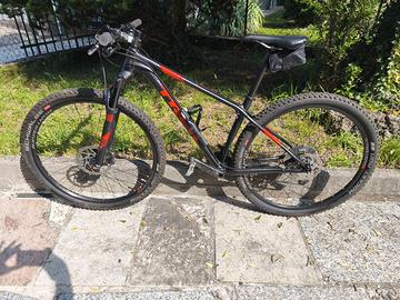 Treck pro caliber carbon/shimano, doppi freni a disco anteriore e posteriore, forcella anteriore regolabile, stella antriore doppia corona, cambio shimano, pompa, borraccia e kit ruota di scorta. Come nuova, usata pochissimo.