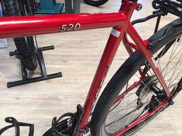 La Trek 520 è la bici più longeva del marchio americano, prodotta dal 1983 e aggiornata con molteplici versioni durante gli anni. Una bici perfetta per chi cerca il perfetto mezzo per viaggiare senza inconvenienti ma decisamente aggiornata dal punto di vista tecnico. Il suo telaio, ricco di predisposizioni per qualsiasi tipo di portapacchi e cage, è fatto di acciaio, ad eccezione della sua forcella dove i tecnici Trek hanno preferito utilizzare l’alluminio. Disponibile Tg 48 Condizioni impeccabili