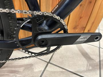 Telaio ALR in lega Alpha 300 che è la più leggera di TREK, gruppo cambio SRAM APEX 1 con trasmissione 1x11, corona davanti da 40 denti e pacco 11/42.
