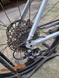 Bici gravel telaio in alluminio e forcella in carbonio, taglia 54. Cambio manuale Sram Apex XPRL 1x12. Pneumatici tubeless con lattice 700x42C. Pedali shimano compresi.