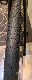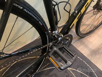 telaio in alluminio e forcella in carbonio, ideale per iniziare nel ciclismo su strada grazie al suo comfort e alla sua stabilità. È dotata di freni a disco meccanici, trasmissione Shimano Claris a 8 velocità e pneumatici da \(700\text{mm}\) con una larghezza di \(32\text{mm}\). Offre un design orientato al comfort, spazio per parafanghi e portapacchi, ed è adatta anche per terreni leggeri, come il gravel.