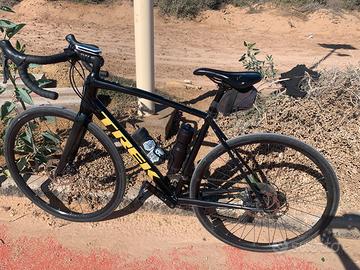 Telaio: AlluminioForcella: CarbonioTrasmissione: Shimano Claris a 8 velocitàFreni: A disco (meccanici, non idraulici)Ruote: Bontrager R1 Hard-Case LitePneumatici: 700x32Guida: Stabile, confortevole e reattivaVersatilità: Adatta anche a terreni leggeri (gravel)Spazio per pneumatici: Il telaio supporta pneumatici più larghi di quelli installati in fabbrica