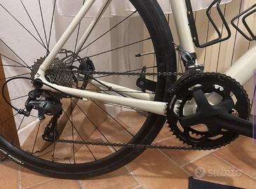 Vendo (PREZZO TRATTABILE) per errata valutazione taglia (troppo grande per me), Trek Domane AL 4 Gen 4, modello 2025. La bici ha all'attivo scarsi 2000 km, completa di ogni accessorio. CARATTERISTICHE TECNICHE: - Telaio: Alluminio. - Forcella: In Carbonio. - Gruppo: Cambio e freni a disco idraulici Shimano Tiagra 2x10. - Taglia: 58 (Altezza consigliata: 1,79 m - 1,85 m). UPGRADE E ACCESSORI INCLUSI: - Pneumatici: Sostituiti con Hutchinson da 35c. Ottima scorrevolezza su strada e tassellatura laterale per sterrati leggeri. - Ciclocomputer: Coospo GPS incluso (velocità, distanza e tutti i dati principali). - Extra: Doppi portaborraccia in alluminio + borsetta da telaio porta smartphone/oggetti. Pedali non compresi. - Prezzo:1.100 € trattabili (Prezzo del nuovo 1.500/1.600 € escluse migliorie). - Consegna: Preferisco lo scambio a mano per permettere visione e prova del mezzo. Per informazioni e per ricevere le foto dettagliate della bici, scrivetemi in privato.