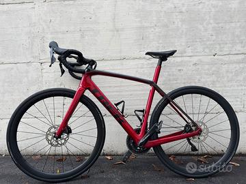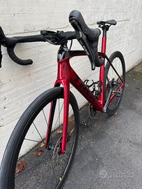Trek Domane in buonissime condizioni, appena tagliandata, catena nuova, impianto freni spurgati, pasticche nuove. Le ruote originali sono Bontrager in alluminio con copertoni Pirelli Cinturato per gravel da 32’’, volendo posso ripristinare il copertone Pirelli da strada da 28’’. I pedali sono Look come da immagini specifiche, compreso inoltre stem più lungo e cockpit alluminio Bontrage. Piccoli graffietti impercettibili sul telaio, dovutamente trattati con vernice Trek che lascio a disposizion. I graffi ricoperti sono evidenziati come da immagini o video. Disponibile ma ad un prezzo superiore anche con ruote in carbonio Bontrager Eolus Pro 37 come quelle montate in foto.