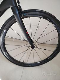 Cerchi in carbonio FSA (tubolari) K-Force light 40mm molto scorrevoli. Bici adatta per altezze da 1,70m fino a 1,80m.