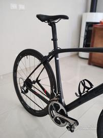 Bici da corsa, modello versatile , molto comoda e reattiva, telaio con sistema Isospeed anteriore e posteriore (vedi foto) gruppo Dura Ace 11V meccanico (guarnitura 34/50, deragliatore, leve cambio/freni, pacco pignoni 11-28, catena), freni Bontrager con pattini ultimo modello, peso totale bici 7,2 kg.