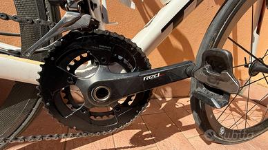 Due guarniture 50/34 con possibilità di Pedivelle 170 o 172,5 mm, pedali Look Ti, Peso 6,8 kg. Bicicletta superdotata vendo solo a reali interessati. Poco trattabile.
