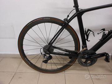 Vendo Trek Domane srl 6 anno 2019 misura 56 orizzontale cm.55,4 adatto per altezza: cm 172-181.Gruppo completo shimano Durace 9100 11velocita'freni rim direct mount-guarnitura 52/36 pedivelle 172,5, pacco pignoni 11/30- Ruote Bontrager Aeolus D3 carbon tubolari, cerchio profilo mm.35,mozzi DT-SWISS 180superlight,peso1160 gr.Tubolari 25mm.Anteriore continental sprinter gatorskin,posterioreTufo hi-composite carbon al 90%.Sella Smp Forma,manubrio 42cm, bontrager isocore pro carbon, attacco 100mm.Pedali Exustar look.Peso kg 7,3. Bici usata, tenuta sempre in ordine non necessita di manutenzione revisionata completamente, normali segni usura.