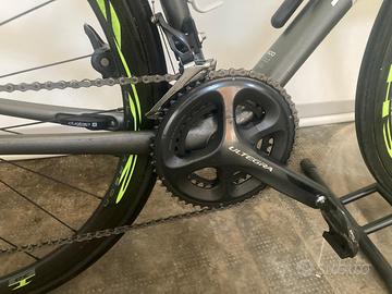 Bellissima bici da strada Trek Emonda in carbonio, taglia 56 (L), leggerissima, pesa circa 7.5 kg, monta rapporti e freni Shimano Ultegra, guarnitura 50-34, cassetta 11.34, cerchi anch'essi in carbonio con tubolare da 25.