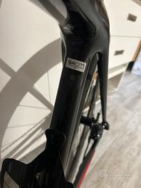 Vendo per passaggio a bici Aero. Bicicletta taglia M - 54, tagliandata ogni anno, catena nuova, copertoncini semi nuovi, cambio elettonico Ultegra, freni a disco, corona Miche 52 sostituita da poco (disponibile anche shimano 50), installato di recente manubrio Aero con passaggio cavi interno, disponibile anche manubrio originale, Sella Specialized. Ruote Bontrager da 37.