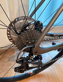 Vendo per inutilizzo pacchetto professionale completo per strada e indoor. Condizioni reali da vetrina, manutenzione maniacale documentabile. 1. BICICLETTA: Trek Émonda SL 6 Disc • Taglia: 56 (ideale 174-182 cm). • Telaio: Carbonio OCLV 500 ultra leggero, geometria H2. • Gruppo: Shimano Ultegra R8000 completo (meccanico 11v) con freni a disco idraulici. • Stato: Utilizzata prevalentemente indoor. Trasmissione trattata esclusivamente con lubrificante a cera (Wax) per massima pulizia e silenziosità. 2. RULLO: Tacx Flux 2 Smart • Tipo: Direct Drive interattivo (ANT+/Bluetooth). • Performance: Simula pendenze fino al 16%, precisione 2,5%. • Extra: Includo pacco pignoni 10v aggiuntivo già montato sul rullo e adattatori perno passante. NOTE: Soluzione "chiavi in mano" pronta all'uso. Mezzi lavati e protetti con prodotti professionali (Svitol Bike). No perditempo o offerte ridicole