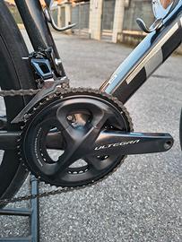 VendoTrek Emonda Slr 800 taglia 62 prismatic black, montata con gruppo Ultegra disc 11v meccanico, ruote Fulcrum 4, sella Specialized Power, attacco 120, manubrio 440, pedivelle 175. La bici viene venduta pronta all'uso con catena nuova, pacco pignoni nuovo (105- 11/30), pastiglie freno, tubi e guaine nuove e tutti gli spessori sotto l'attacco manubrio. Lascio i portabortacce originali. Reggisella con 0 offset. Copertoncini Vittoria Rubino pro da 28. Bici in ottime condizioni, poco usata, introvabile per taglia, condizioni e prezzo. Kit telaio acquistato da rivenditore Trek a novembre 2022, poi sostituito in garanzia ad agosto 2023. Come nuovo, mai caduto, mai gare. Previo accordo posso spedire.