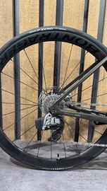 2023 Trek Emonda SLR Project One SRAM Red eTap AXS - Taglia 52. La bicicletta è adatta ad un' altezza di 161 - 171 cm. Bici in ottime condizioni! Telaio: Carbonio OCLV 800 Series ultraleggero Forcella : Émonda SLR full carbon Deragliatore posteriore : Sram Red AXS 12v Pedivella : Sram Red 172,5mm Freni : Sram Red Ruote : Aeolus Pro 37 Pneumatici : Pirelli Sella : Aeolus Elite Reggisella : Terminale reggisella in carbonio Bontrager, offset 20mm Manubrio : Manubrio e attacco integrati Bontrager Aeolus RSL, carbonio OCLV, percorso Di2, reach 100mm, drop 124mm, larghezza 40cm, lunghezza attacco manubrio 90mm Pacco pignoni : Sram Red 12v Peso 6,9Kg Rif. RD163