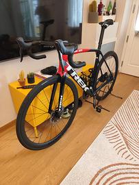 Vendo Trek Emonda SRL7 full carbon ad alto modulo OCLV 800, manubrio integrato, passaggio fili nascosto, cambio elettronico SRAM Force, freni a disco, cerchi carbon Botranger Aeolus 37 con copertoncini Continental GP 5000. Anno 2021, Taglia 56, 5.000km percorsi.