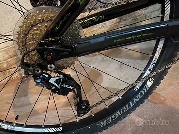 Vendo mtb taglia M/L usata pochissimo e come nuova. Per chi se ne intende non ha bisogno di presentazioni e sa quanto costa nuova. No perditempo ma solo realmente interessati. Non spedisco. Per i neofiti di seguito le caratteristiche prese dal sito: Kit telaio Telaio Alpha Platinum Aluminum, ABP Convert, Full Floater, E2 tapered head tube, internal derailleur & dropper post routing, press fit BB, ISCG 05 mount, magnesium EVO link, down tube guard, G2 Geometry, 120mm travel Forcella Fox Evolution Series 32 Float w/CTD (climb-trail-descend) damper, rebound, E2 tapered steerer, 15QR thru axle, custom G2 Geometry w/51mm offset, 120mm travel Ammortizzatori posteriore Fox Evolution Series Float w/DRCV, CTD (climb-trail-descend) damper, rebound, tuned by Trek in California, 7.25x1.875" Ruote Ruote Bontrager alloy, 15mm alloy axle front hub; Bontrager sealed cartridge bearing rear hub w/Bontrager Duster 32-hole Tubeless Ready rims Pneumatici Bontrager XR3 Expert, aramid bead, 29x2.30" Trasmissione Leve cambio Shimano Deore, 10 speed Deragliatore anteriore Shimano Deore, high direct mount Deragliatore posteriore Shimano SLX Shadow Plus Guarnitura Shimano M552, 42/32/24 Cassetta Shimano HG62 11-36, 10 speed Componenti Sella Bontrager Evoke 2, chromoly rails Reggisella Bontrager SSR, 31.6mm, 12mm offset Manubrio Bontrager Race Lite Low Riser, 31.8mm, 15mm rise Manopole Bontrager Race Lite, lock-on Attacco manubrio Bontrager Race Lite, 31.8mm, 7 degree Serie sterzo FSA IS-2, E2, sealed cartridge bearing Set freni Shimano Deore hydraulic disc No Specialized, Felt, Focus Bike, Kona, Giant, Bergamont, Cannondale, BMC, Lapierre, Mondraker, Moustache, Santa Cruz, Commencal, Sunn, Trek, Rocky Mountain, Scott, Haibike, Nakamura, Orbea, Yetu Cycles, Rockrider, Cube, Bianchi, ktm.