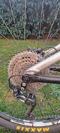 vendo Trek Fuel ex8 taglia M , tenuta molto bene. presenta qualche graffio dovuto all'utilizzo ma perfettamente funzionante. cambio Shimano Xt con frizione , pacco pignoni maggiorato a 46 denti con prolunga cambio, deragliatore con doppia corona anteriore. pedivelle Shimano Xt, freni Shimano Xt già spurgato, ammortizzatore Fox ad aria bloccabile su tre posizioni, forcella Fox ad aria bloccabile su tre posizioni, reggisella telescopico KS . cerchi originali Bontrager tubeless, valvole nuove. lascio anche il pacco pignoni originale, più un pneumatico posteriore di ricambio.