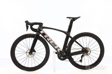 Bici ricondizionata | 1 anno di garanzia | Foto reali | Disponibilità immediata | Finanziamento da 254 € in 12 mesi | Spedizione in tutta Italia. · Prezzo listino: 5000 € · Scontata su zyclora.it: 3059 € Bicicletta da corsa - Telaio in Carbonio - Taglia 52 - Deragliatore: Shimano 105 Di2 - 12 Velocità velocità - Cassetta: 11-34-T - Leve del cambio: Shimano 105 Di2 - Pedivelle: Shimano 105 - Corone: 50-34-T - Freni: Shimano 105 - Ruote: Bontrager Aeolus Elite 35 - Materiale della potenza: Carbonio - Manubrio: - Reggisella: Carbonio Maggiori informazioni sulla bici La Trek Madone SL 6 è una bicicletta da strada ad alte prestazioni che si distingue per la sua aerodinamica avanzata e il telaio in carbonio leggero. Dotata del gruppo elettronico Shimano 105 Di2, offre cambi di marcia precisi e fluidi in ogni situazione. I suoi freni a disco idraulici garantiscono una frenata potente e sicura, anche in condizioni avverse. Ideale per ciclisti esigenti che cercano velocità, efficienza e tecnologia all'avanguardia, la Madone SL 6 combina design innovativo e comfort, rendendola una scelta eccellente per chi desidera superare i propri limiti in ogni percorso. Esaminamo ogni bici in dettaglio · Controlliamo l'integrità strutturale del telaio e delle ruote. · Controlliamo il funzionamento delle sospensioni, della trasmissione e dei freni. · Esaminiamo tutti gli articoli soggetti a usura e modifichiamo quelli necessari per garantire il corretto funzionamento. · Analizziamo il funzionamento del motore, della batteria e del display, nel caso delle bici elettriche. · Effettuiamo la lubrificazione completa e il serraggio di tutte le viti della bici.