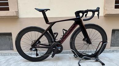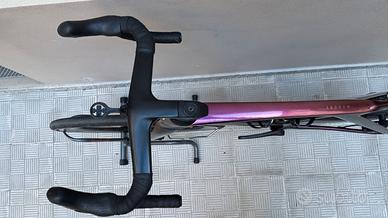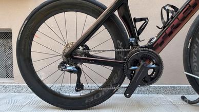 Trek Madone SRL7 GEN7, appartenuta a ragazza, vendo perchè passo a una bici più da salita, davvero stupenda. Prezzo di listino era 10.999 come da immagine è rimasta a listino su sito Trek fino a qualche settimana fa, la bici è stata acquistata nel 2025. Vendo completa di portaborracce, porta garmin, NO pedali. Telaio: carbonio OCLV Serie 800 ultraleggero Colore: Axinite Flip / Trek Black Gruppo: Shimano Ultegra Di2 elettronico Ruote: **VENDO con ruote AELOUS PRO da 51, POSSIBILE acquisto delle ruote che vedete in foto che sono AELOUS RSL da 62 A PARTE** Cockpit integrato aero Reggisella con sistema IsoFlow Condizioni Bici in condizioni eccellenti, sempre tenuta con cura maniacale e revisionata. Nessuna caduta, ha un piccolo graffio su leva del cambio dx, qualche segno sul gruppo, ma cose di poco conto dovute all'appoggio. Taglia 54 (M)