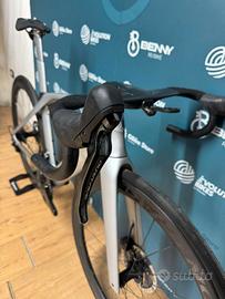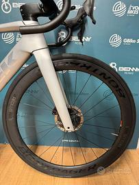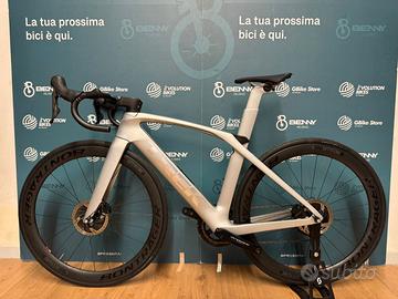 Trek Madone SLR 9 Disc Taglia 52 2019 Telaio Carbonio OCLV 700 Series, tubi con profilo KVF (Kammtail Virtual Foil), IsoSpeed regolabile Madone, seatmast microregolabile, tubo di sterzo conico, BB90, freni a disco Flat Mount, perno passante da 12 mm, passaggio dei cavi invisibile, Control Center, posizionamento di precisione della borraccia, Aero 3S chain keeper, compatibile con DuoTrap S Forcella Madone KVF full carbon disc, cannotto conico in carbonio, forcellini in carbonio, passaggio dei cavi invisibile, freni a disco Flat Mount, perno passante da 12 mm Ruota anteriore Bontrager Aeolus Pro 5, OCLV Carbon Ruota posteriore Bontrager Aeolus Pro 5, OCLV Carbon Comandi Cambio Dura-Ace FC-R9170 11s Cambio Dura-Ace FC-R9170 11s Deragliatore Dura-Ace FC-R9170 11s Cassetta 11.28t Guarnitura Dura-Ace FC-R9100 Corone 52/39t Pedivelle Dura-Ace FC-R9100 Powermeter 172.5mm Sella Prologo Nago R4 Pas Reggisella Madone seatmast cap in carbonio Manubrio Aero regolabile specifico per Madone, VR-CF, instradamento interno dei cavi Leva freno anteriore Shimano Dura Ace, 11 velocità Leva freno posteriore Shimano Dura Ace, 11 velocità N.B. •Le nostre bici usate vengono revisionate e sottoposte a oltre 20 controlli riguardo la parte meccanica e le condizioni del telaio ( Crepe, graffi etc…) •Le bici usate potrebbero comunque presentare graffi o difetti puramente estetici che non compromettono il normale funzionamento del prodotto. •I nostri controlli vengono applicati anche per quanto riguarda: ACCESSORI, COMPONENTI ETC… •Spedizione Gratuita in tutta Italia. •Metodi di pagamento: Bonifico, Paypal, Finanziamento etc…(per info su pagamenti dilazionati in privato.