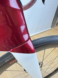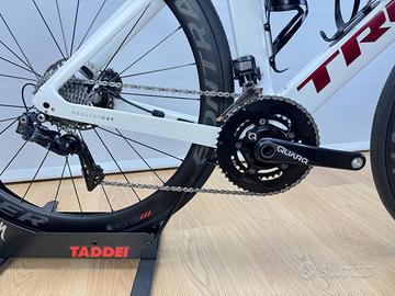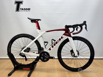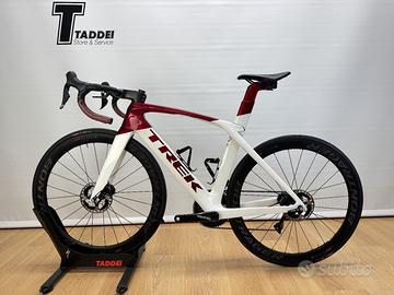 Trek Madone SLR 9 Gen 6 del 2020 tenuta in modo perfetto ed usata sempre molto poco come si può immaginare dalle foto, adesso sostituita per passaggio a Tarmac, gomme nuove appena sostituite. Telaio in carbonio OCLV700 montata con gruppo Shimano Dura-Ace R9170 a 11 velocità elettronico con guarnitura Sram Quarq e ruote Bontrager Aeolus XXX in carbonio con profilo da 60mm il tutto per un super peso da 7,98Kg. La bici perfetta per chi cerca una bici aerodinamica ideale anche per il triathlon, sarà consegnata o spedita completamente revisionata dalla nostra officina. Taglia 54 adatta per altezza da 172 a 176 cm circa.