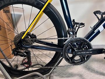 Bici assolutamente perfetta, 1 anno di vita tenuta in maniera maniacale TG : L orizzontale c/c : 56,8 piega : 39-42 lunghezza 100 mm Peso senza pedali : 7,05 kg Gruppo : shimano durace r 9270 di2 , guarnitura con misuratore di potenza originale 52/36 e/o 54/40 Ruote : Bontrager Aelous Rsl 51, carbonio oclv, tubeless ready Prezzo : 6999 No permute Per info : fast forever bike shop 0583 584807 342/1746978
