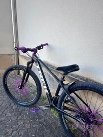 Questa fantastica bicicletta Trek Marlin 5 taglia s di telaio ,27.5 pollici di ruota,modificata perfettamente per impennare,monta come copertoni dei maxxis hookworm 27.5 per 2.50. poi monta sella mafiabike, disco e pastiglie freno appena cambiate e freno mt 200, manubrio nuovo, attacco manubrio nuovo,manopole nuove,cambio e catena e rocchetto tutti nuovi vanno tutte le marce ,come ammortizzatore abbiamo un sr suntour xce a molla che vanno ,ma un po da revisionare. cerchio dietro nuovo cambiato da poco e davanti ancora originale. perfetta per impennare prezzo poco trattabile.