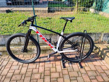 Vendo trek procaliber 9.7 tagli L, usata pochissimo e ben tenuta. Telaio in carbonio, forcella RockShox SIS, ruota Bontrager in carbonio, cambio Sram GX Eagle 12 velocità (32T 10-52), reggisella telescopico 100 mm di corsa. Vendo per inutilizzo e prezzo leggermente trattabile. Astenersi perdi tempo
