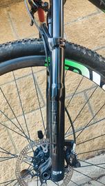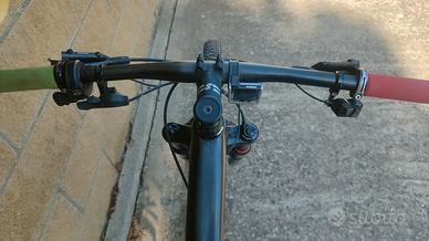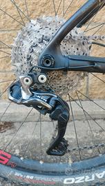 Cambio anteriore e posteriore Shimano XTR elettronico con display (indicazioni rapporto e indicazione carica batteria). Trasmissione anteriore con doppia corona. Freni XT. Gomme buone. Forcella Rock Shox NUOVISSIMA ( zero km)