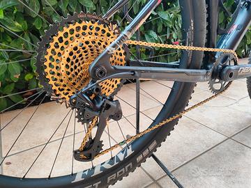 Vendo Trek procaliber 9.9 taglia M/L 18.5 ammortizzatore posteriore isospeed, dischi ashima, sella e reggisella in carbonio, manubrio in carbonio, guarnitura carbonio next sl, corona 34 nuova, cerchi e mozzi frm original 30 (canale da 30) con cuscinetti nuovi, corpetto SRAM nuovo, fornisco altri cuscinetti di scorta così come vari set di pasticche. Bici top di gamma peso senza pedali kg 8.740. massima disponibilità per foto e video, bici perfetta usata pochissimo a livello amatoriale. Preferisco consegna a mano. in caso di acquisto con tutto subito, contattatemi prima per accordi su eventuale spedizione