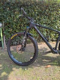Per inutilizzo vendo bici Trek Procaliber in carbonio, con qualche upgrade. Misura 18,5 (M/L) per altezza 170-180 cm. Sostituito il gruppo cambio originale NX con Sram GX 12v completo (manettino, deragliatore, guarnitura, cassetta 10-50 e catena), sostituito manubrio d'origine in alluminio con Bontrager RXL in carbonio, installato reggisella telescopico TranzX con comando a manubrio, ruote tubeless Crank Brothers Cobalt, copertoncini Maxxis seminuovi latticizzati, forcella Fox 32 escursione 100mm. Fatta ricontrollare dal negoziante poco prima di essere messa in vendita per evitare disguidi. Le scritte Trek nero opaco le ho applicate io e sono facilmente rimovibili, sotto la scritta è grigio avio come da quinta foto. Vado quasi unicamente in bici da strada per cui la mtb è stata usata realmente poco. Per domande o altro resto a disposizione.