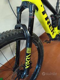 Modello: Trek Rail 9.7 Anno: 2021 Taglia: M Colore: Nero / Giallo fluo Telaio: Carbonio OCLV Mountain Motore: Bosch Performance Line CX Batteria: Bosch integrata 625 Wh Sospensioni: Full suspension Forcella: RockShox Ammortizzatore posteriore: RockShox Trasmissione: SRAM Freni: A disco idraulici Ruote: 29" Copertoni: Bontrager XR5Chilometraggio: 114 km Stato: eccellente / pari al nuovo Nessun intervento da fare Pronta all’uso Prezzo leggermente trattabile No perditempo