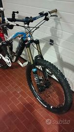 Tenuta perfettamente. Forcella Fox float 36 160mm, ammortizzatore Fox float rp2, cambio Shimano SLX 10 rapporti posteriori 2 anteriori. Freni a disco idraulici Avid Elixir 5, movimento centrale Raceface Respond, manubrio Dabomb Bazooka 800, ruote Bontrager 26x2.35.