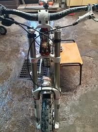 Vendo Trek session 8 Downhill la bici monta sospensione posteriore Fox dhx 4.0 e anteriore rockshox boxxer cerchi bontragher manubrio bontragher pedali raceface attacco manubrio bontragher freni avid elixir r avanti e dietro Shimano mt420 che ho preso da 2 mesi ho anche comprato la gomma 2 settimane fa la bici ha diversi segni di usura formula vista e piaciuta