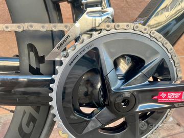 Vendo bici da triathlon per cessata attività, taglia M, anno 2022. Gruppo Sram Rival AXS. All’incirca 4000Km di utilizzo, catena e copertoni sono ancora quelli di fabbrica. È stato montato un sistema di prolunghe (monta delle USE ultimate 45 in alluminio) per rendere piu facile interventi di regolazione e sostituzione componenti, viene comunque fornito il kit originale. Sono disponibili anche delle promunghe 51 speed shop piega SKI. Comandi prolunghe wireless, comandi cablati al basebar. Pedivelle da 160mm nuove, senza power meter, montate per il Bikefitting ma mai utilizzata, causa problemi fisici. Viene fornita la sua borraccia aerodinamica. Pedali non inclusi. Disponibile per qualsiasi altra foto o prova, No scambi, no spedizione.