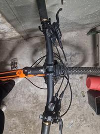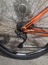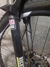 Telaio Alluminio Alpha Platinum passaggio cavi interno Forcella RockShox Recon Silver, molla Solo Air, con blocco da remoto, escursione 100mm Ruote Madspeed7 29" Pneumatici Vittoria Barzo 29x2,25 Specialized ground control, GRIPTON 29x2.3 Trasmissione Leve cambio Shimano Deore, 10 speed Deragliatore anteriore SRAM X7 Deragliatore posteriore Shimano Deore XT Cassetta Shimano 11-36, 10 velocità Sella Fizik Reggisella Bontrager Manubrio Bontrager, 31,8mm, rise 5mm Manopole Bontrager Race Attacco manubrio Bontrager Set freni Freno a disco idraulico BL-M4100 posteriore (nuovo) Disco idraulico Shimano M445 anteriore pastiglie freni appena cambiate Peso 12.50 kg
