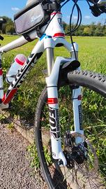 La MTB è in ottime condizioni.Lievi segni di usura.Gomme nuove. Telaio: Alpha Platinum Aluminum , tubi idroformati e rinforzati, tubo sterzo conico E2, movimento centrale press-fit, forcellini forgiati a freddo, G2 Geometry 29". Sospensione Anteriore:Serie Fox Evolution 32 Float 29 RL, molla ad aria, blocco, ritorno, G2 Geometry ottimizzata, offset corona 51 mm, cannotto sterzo conico E2, escursione 100 mm. Dimensione:17.5"- TagliaM/L. Ruote e Mozzo anteriore in lega Bontrager FCC 28 fori, mozzo posteriore in lega Shimano M525 SL 32 fori; cerchi Bontrager Mustang Disc 29, Tubeless Ready Pneumatici 29-1 Expert, 29x 1.95" Cambio Shimano SLX M660-10, 10 rapporti. Deragliatore anteriore:Shimano SLX. Deragliatore posteriore:Shimano Deore XT M780 Shadow. Guarnitura: Custom Shimano M772, 42/32/24. CassettaShimano HG62-10 11-36, 10 rapporti. SellaBontrager Evoke 2, binari in Cr-MoCannotto sellaBontrager Rhythm Elite, 27,2 mm, offset 0. ManubrioBontrager Race Lite Low Riser, 31,8 mm, rialzo 5 mm, sweep 9°. Attacco Manubrio:Bontrager Race X Lite, 31,8 mmSerie sterzoFSA NO.57, E2, cuscinetti sigillati ACBSet. Freni a disco idraulici Shimano SLX M666.Impugnatura Bontrager Race Lite, Lock-On. tag: KTM,giant,Scott,specialized,cube.moongose.