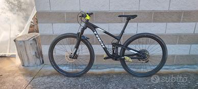 Vendo Trek top fuel 8.8 in alluminio da trail Cross-country XC, 29" taglia M biammortizzata. Monta forcella Rockshox Recon 120 e Fox float DPS performance 120. Sboccabili con sistema Twistlock. Cambio Sram NX eagle. Freni Shimano BL-MT501. Bici acquistata nuova e perfetta, usata pochissimo.