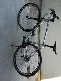 Bici molto leggera forcella in carbonio, cerchi shimano 500R, copertoni da 38 gravel, gruppo cambio XT 10V, prolunga manubrio e sellino ammortizzato utile per percorsi misti.