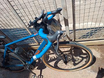 triban RC 120 montata gravel , taglia L,leve 105 , manubrio gravel,cambio Shimano 10 v,freni a disco meccanici doppio pistone nuovi , Catena nuova,gomme nuove con poche uscite con motore tsdz2 e batteria,si può facilmente riportare a muscolare , disponibile a spedire a carico dell' acquirente.non ho pezzi originali , bicicletta elettrica